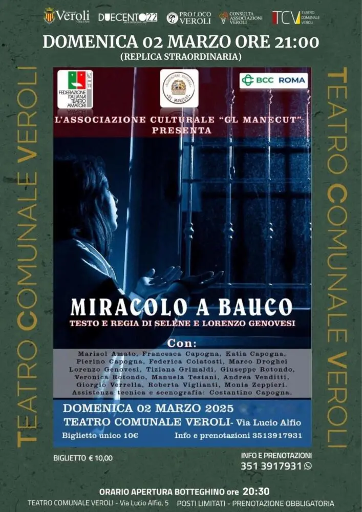 A volte solo qualcosa di straordinario può riportarci con i piedi per terra quando stiamo sottovalutando e trascurando le cose veramente importanti della vita. Questo è il filo conduttore dello spettacolo in dialetto ciociaro portato in scena dalla compagnia Gl manecut domenica 2 marzo al Teatro Comunale Veroli.