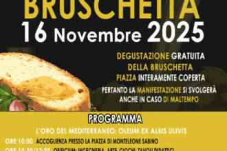 Un filone di pane lungo ben 20 metri, pronto per essere trasformato in centinaia di bruschette e distribuito gratuitamente a tutti i presenti. È questo il momento clou della Sagra della Bruschetta, che domenica 23 novembre 2025 riporterà a festa le vie di Monteleone Sabino (RI), l’antica Trebula Mutuesca nel cuore della Sabina.