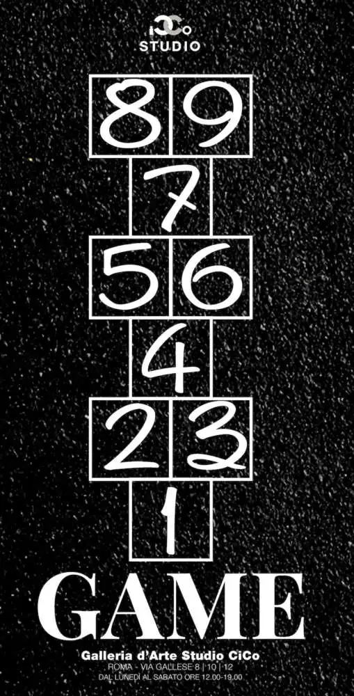 Da lunedì 10 a mercoledì 19 ottobre, dalle 12 alle 19, presso Galleria Studio CiCo in via Gallese 8, Roma, si terrà la mostra collettiva dal titolo “GAME”, organizzata dall’artista e curatrice Cinzia Cotellessa.