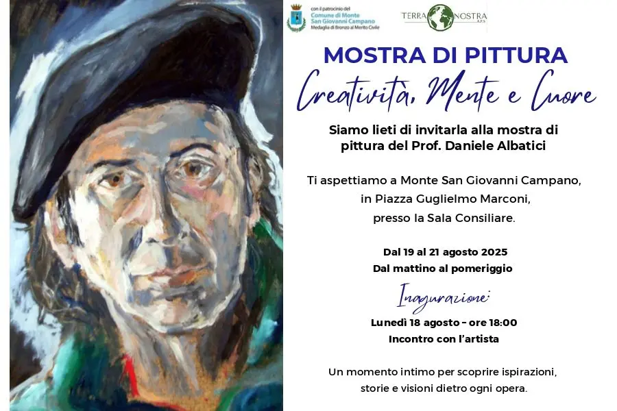 Lunedì 18 Agosto alle ore 18.00 si terrà l’inaugurazione della mostra di pittura. L’associazione Terra Nostra APS donerà un eco gadget ai presenti.