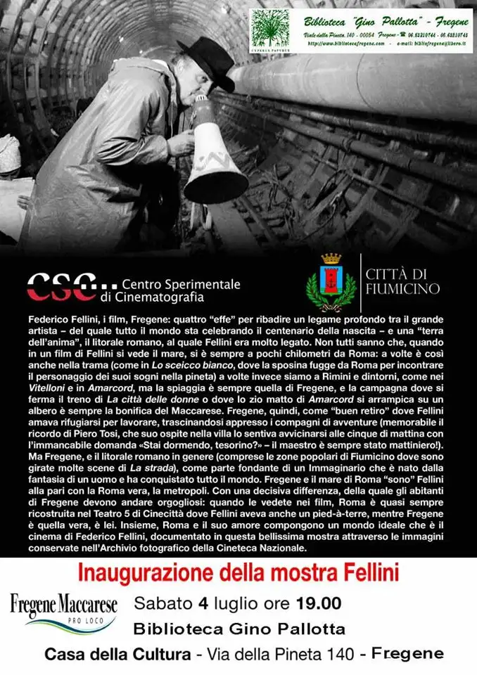 La mostra sarà presentata da Vincenzo Aronica, responsabile eventi del Centro Sperimentale di Cinematografia, e dal Prof. Marco Sani, presidente di Fregene per Fellini.