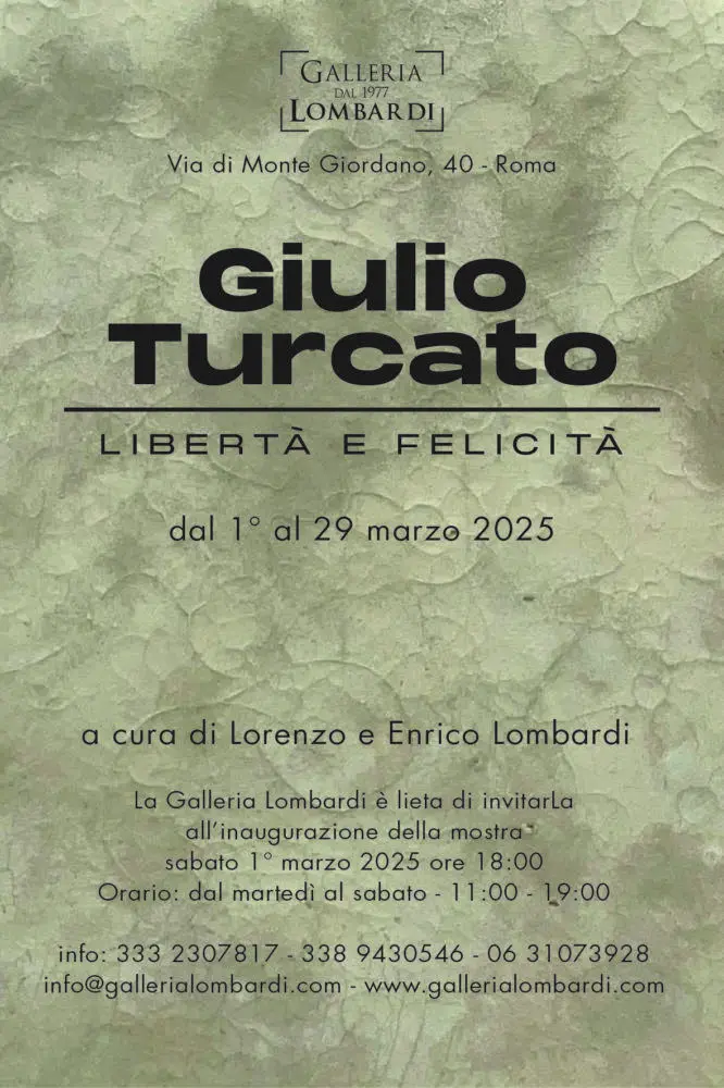 Dal 1° al 29 marzo 2025 la Galleria Lombardi a Roma presenta nel trentennale della morte dell’artista la mostra Libertà e felicità dedicata a Giulio Turcato (Mantova, 1912 – Roma, 1995).