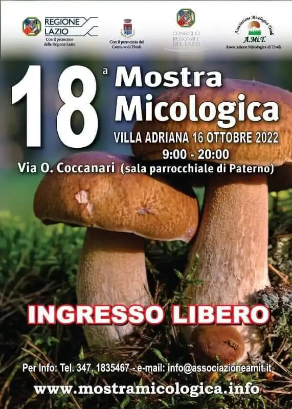 La tradizionale Mostra Micologica Città di Tivoli organizzata dall’Associazione Micologica di Tivoli, compie 18 anni e ci sembra ieri quando pensavamo alla realizzazione di un progetto che ci sembrava complesso ma accattivante e, nonostante tutte le difficoltà che ci si prospettavano, eravamo convinti di raggiungere questo ambito traguardo perché animati dallo spirito giusto che fondava sulla passione di tutti gli associati, allora meno numerosi ed esperti rispetto ad oggi.
