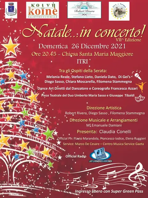 Si terrà il prossimo 26 Dicembre 2021, alle ore 20.45, presso la Chiesa di Santa Maria Maggiore ad Itri: la VII edizione di “Natale…in Concerto“.