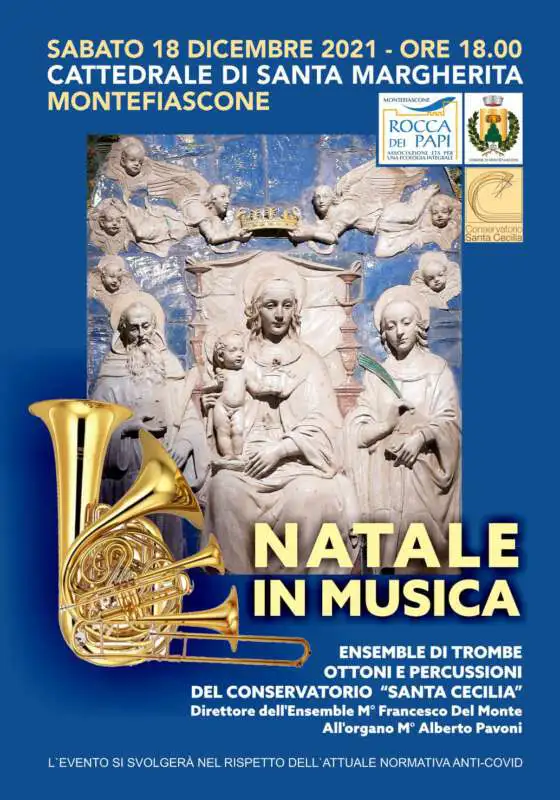 Proseguono le iniziative per le festività natalizie dell’associazione Rocca dei Papi per un’ecologia integrale. Con il patrocinio del Comune di Montefiascone (VT), sabato 18 dicembre, alle ore 18, nella suggestiva cattedrale di Santa Margherita, si esibirà per il concerto “Natale in musica” l’Ensemble di trombe, ottoni e percussioni del conservatorio “Santa Cecilia” di Roma. Diretta dal maestro Francesco Del Monte, la formazione sarà accompagnata, per l’occasione, dal maestro Alberto Pavoni all’organo.