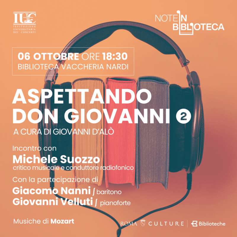 La IUC Istituzione Universitaria dei Concerti riprende la rassegna Note in Biblioteca con una nuova serie di incontri musicali in collaborazione con Biblioteche di Roma. Aspettando Don Giovanni è il titolo dei primi due appuntamenti incentrati sui temi e sui personaggi del Don Giovanni di Mozart in occasione dell’evento inaugurale della 78esima Stagione IUC che vedrà l’esecuzione in forma di concerto del capolavoro mozartiano alla Sapienza. Un modo per avvicinarsi a questo importante titolo del teatro lirico e di approfondirne i contenuti attraverso le parole di esperti comunicatori come Leonetta Bentivoglio, giornalista e scrittrice, e Michele Suozzo, critico musicale e conduttore radiofonico.