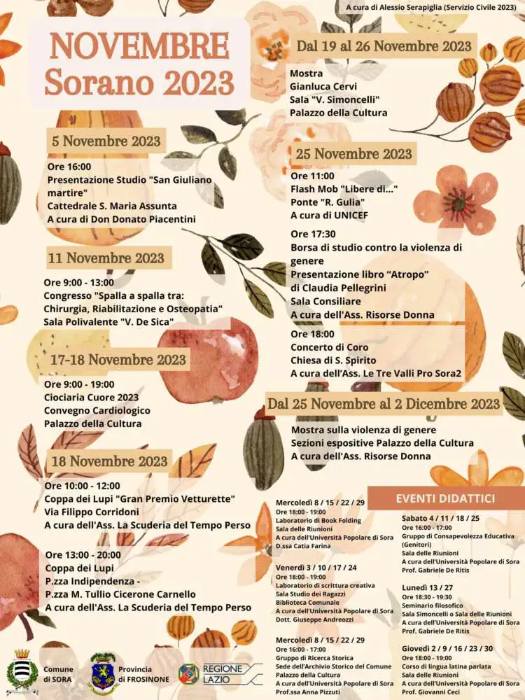Di seguito la locandina degli appuntamenti a Sora.