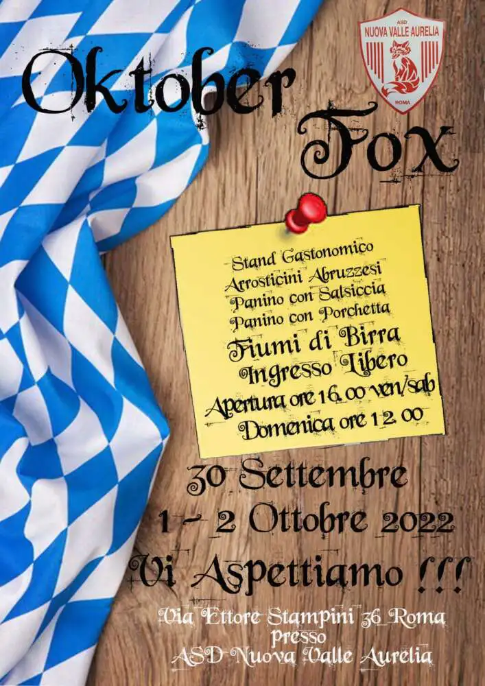 Una tre giorni con Fiumi di Birra Tedesca Arrosticini Abruzzesi e tanto altre,  non mancare ti aspettiamo con tanta allegria sete e fame!!!!! Via Ettore Stampini 36 Roma C/o il Circolo “The Fox”...