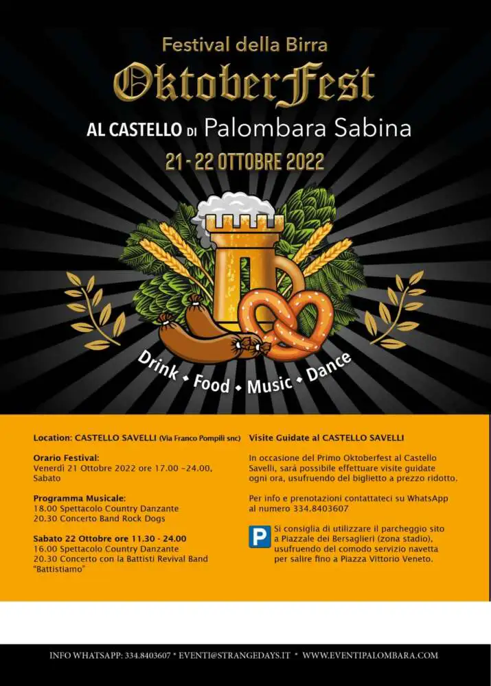 Per la prima volta un OktoberFest italiano all’interno di un castello medievale, la cultura del cibo, del bere e della storia si incontrano il 21 e 22 Ottobre a Palombara Sabina