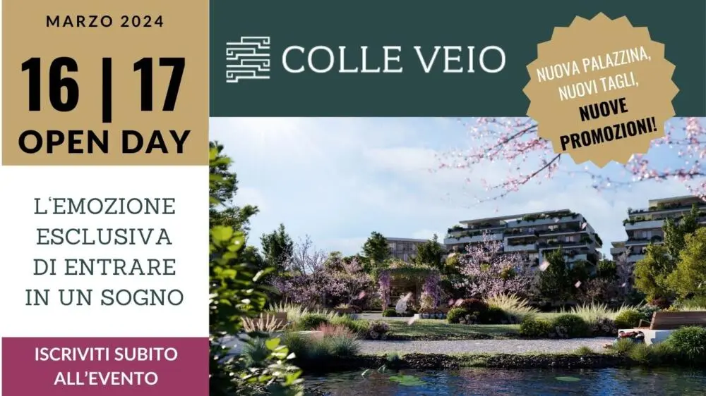 L’invito è esteso a tutti: venite numerosi all’Open Day del 16 e 17 marzo e scoprite le promozioni esclusive riservate a chi si accredita durante l’evento. Colle Veio non è solo una dimora, ma il punto di partenza per una vita immersa nella bellezza, nella natura e nel comfort.