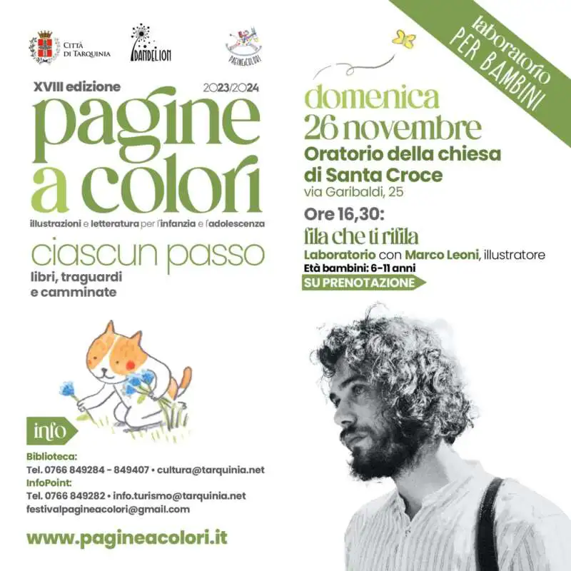 Dopo la lettura condivisa dell’albo, i bambini saranno chiamati a ripercorrere i suoi sentieri, reali e immaginari, muovendosi su un filo, camminando, esplorando, appuntando e disegnando gli incontri da lui fatti, fino a comporre una fantasiosa mappa arricchita delle tappe più incredibili. Leoni alterna al lavoro da freelance come illustratore per clienti privati al visual development per cortometraggi di animazione. Ha inoltre aperto insieme ad altre colleghe“Naso di Bruco”, un piccolo spazio giallo e coworking sotto i portici nel centro di Bologna, dove tiene corsi brevi e workshop di illustrazione come docente. La partecipazione al laboratorio richiede la prenotazione a laboratoripagineacolori@gmail.com, specificando nome, età del bambino e data dell’attività, e un contributo di 2 euro.