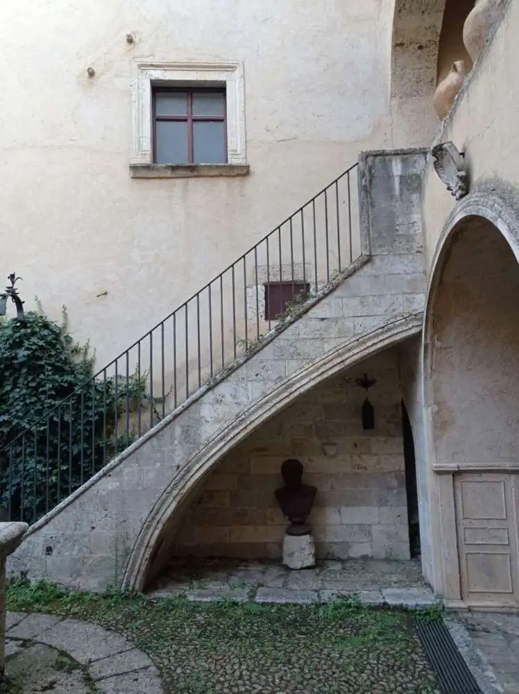 L’antica residenza si trova nel centro storico della città, fittamente abitato in tutte le epoche storiche. Nel tessuto edilizio urbano si distingue per la sua rigorosa eleganza. L’immagine attuale ci rimanda all’archetipo del palazzo cinquecentesco.