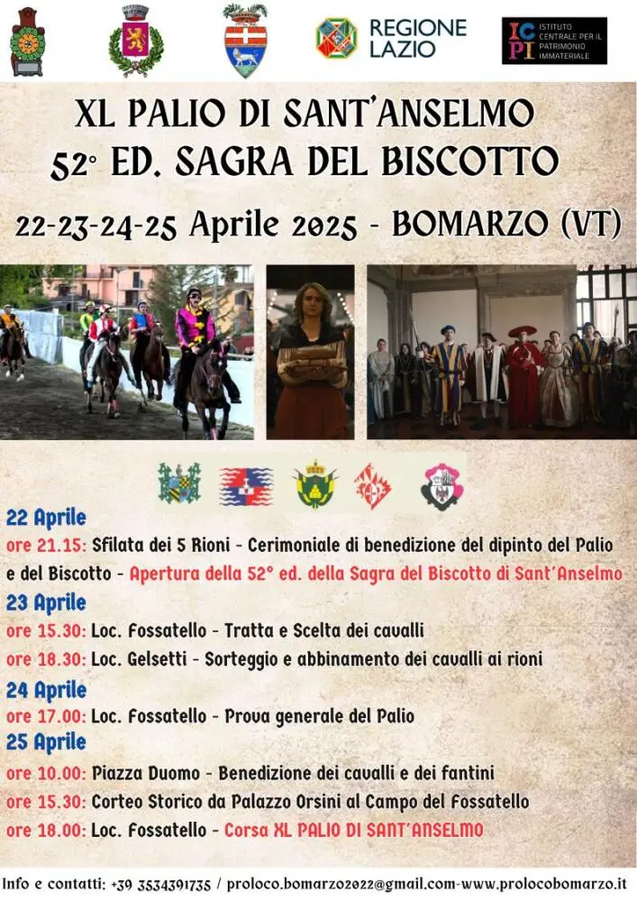 A Bomarzo, il Palio di Sant’Anselmo, evento in contemporanea con la Sagra del Biscotto che, da 51 anni, apre i festeggiamenti del Santo Patrono.
