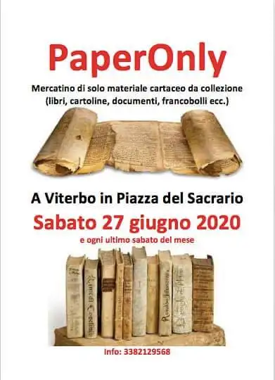 Mercatino di solo materiale cartaceo che si tiene a Viterbo sotto i portici di Palazzo dei Priori l’ultimo fine settimana di ogni mese.
