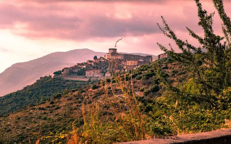 Guardando le vette brulle e sassose circondate dai boschi di faggio, ci si ritrova tra asprezza e dolcezza, crinali sassosi e versanti lussureggianti. Ed ecco che appena fuori il borgo medievale di Bassiano si raggiunge il Santuario del Crocifisso e l’annessa Grotta di Selvascura, scrigno spirituale misterioso, custode di simbologie e pitture risalenti al XIV secolo, caratterizzato da un ambiente ipogeo dove gli elementi naturali narrano silenziosi un paesaggio isolato che pretende sensibilità. Sulle pareti gocciolanti e umide si susseguono scene di bovini, cinghiali, arcangeli, annunciazioni e benedizioni. Il cammino riprende a mezza costa, tra paesaggi sospesi sopra l’Abbazia cistercense di Valvisciolo e l’abitato di Norma, che dalla mitica rupe domina la pianura pontina, per avvicinarsi sempre di più ad una “fotografia” suggestiva, il borgo di Sermoneta che porta in trono il mitico Castello Caetani.