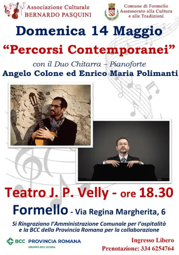 La Associazione Culturale Bernardo Pasquini vi invita a partecipare domenica 14 MAGGIO al concerto organizzato al teatro comunale J.P. Velly in Formello; l’appuntamento è alle ore 18,30.