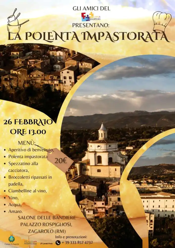 Domenica 26 febbraio a Zagarolo pranzo a menù fisso dedicato alla polenta impastorata, piatto tipico del territorio.