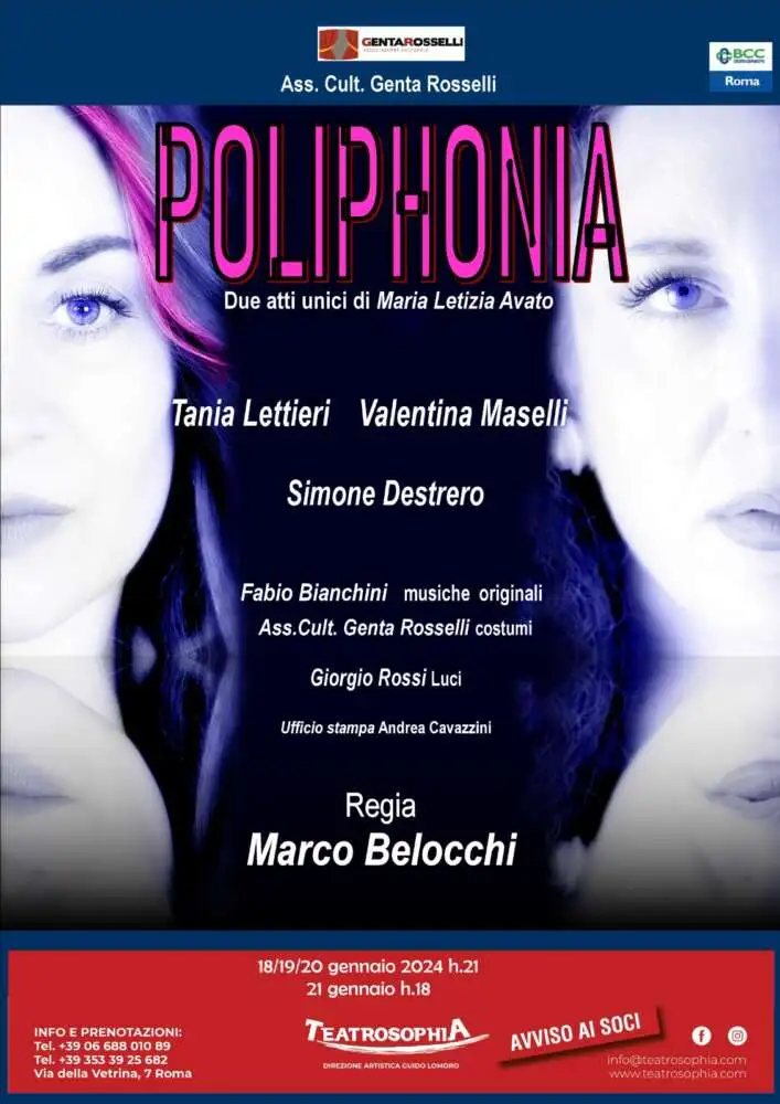Nell’atto unico Poliphonia sono in scena gli attori Valentina Maselli e Simone Destrero, nel secondo atto La goccia è in scena l’attrice Tania Lettieri sempre in compagnia dell’attore Simone Destrero.
