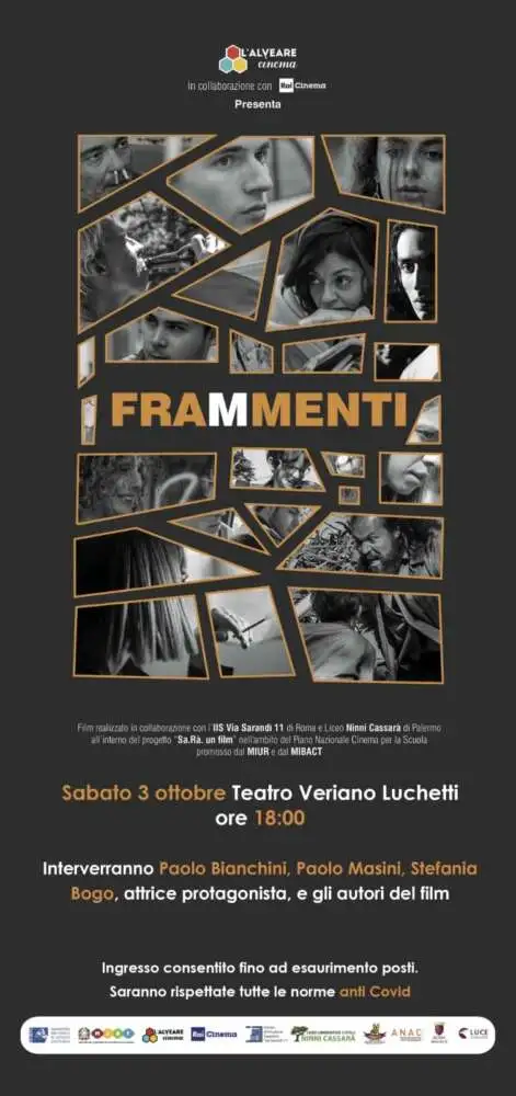 Sabato 03 ottobre 2020, alle ore 18,00, al teatro “Il Rivellino – Veriano Luchetti “, in collaborazione con Rai Cinema, presentazione del film: “FRAMMENTI“.