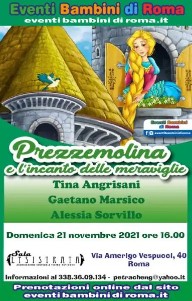 Domenica 21 Novembre 2021, alle 16,00, presso il Teatro Lysistrata, via A. Vespucci, 40 – zona Testaccio va in scena lo spettacolo per bambini “Prezzemolina e l’incanto delle meraviglie“.