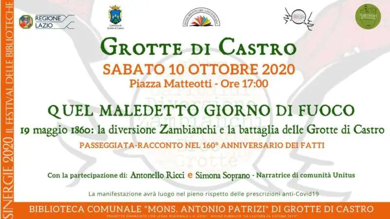 Dopo il rinvio della settimana scorsa, causa persistente avversità meteo, torna alla carica la passeggiata “garibaldina” dedicata alla battaglia di Grotte di Castro. Una iniziativa del Sistema bibliotecario del lago di Bolsena e della associazione delle “Comunità narranti” per “Sinergie 2020 – Il festival delle biblioteche”.