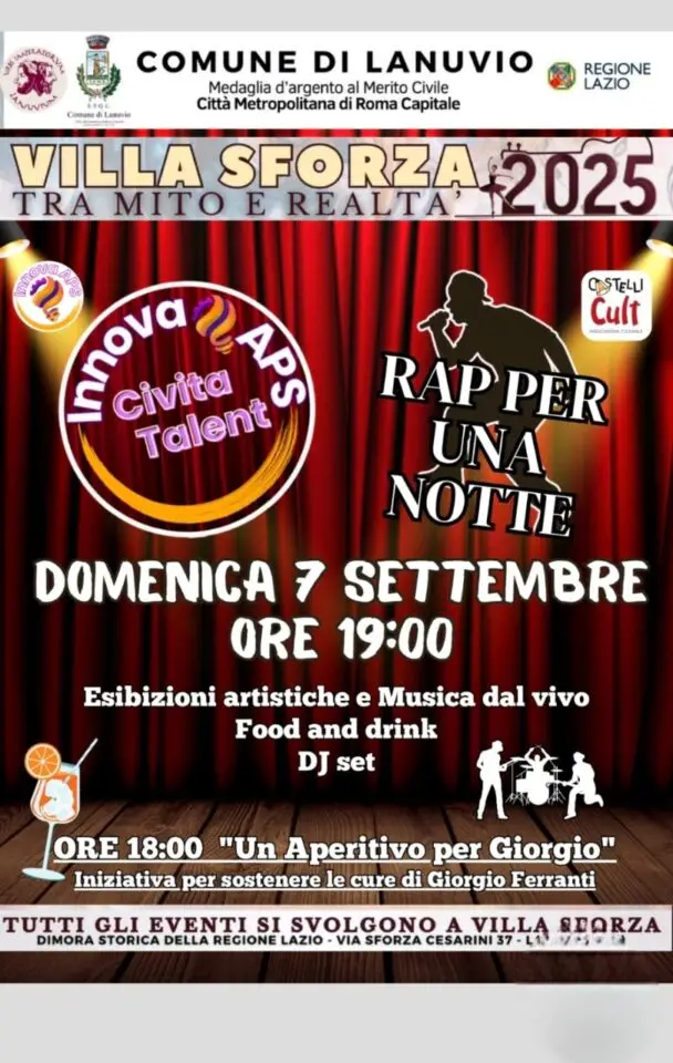 L’Amministrazione comunale di Lanuvio, in collaborazione con Innova APS, Castelli Cult, e con il contributo della Regione Lazio, propone per domenica 7 settembre un doppio appuntamento che sarà ospitato presso Villa Sforza, dimora storica della Regione.