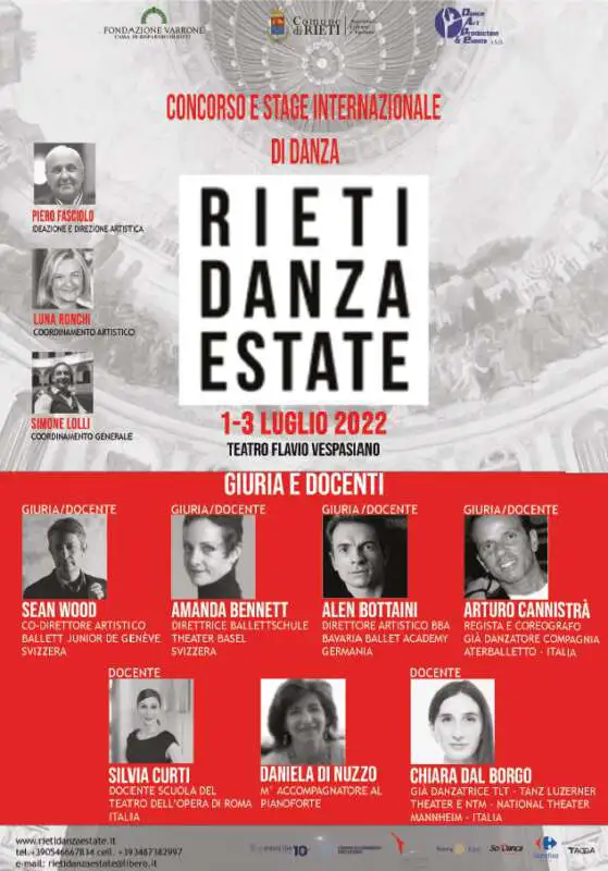 Si svolgerà infatti, dal 1 al 3 luglio 2022 presso il meraviglioso Teatro Flavio Vespasiano, il Rieti Danza Estate, prestigioso concorso e stage estivo giunto alla sua IX edizione.