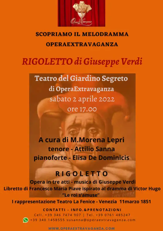 Sabato 2 APRILE insieme al Teatro del Giardino Segreto per scoprire insieme uno dei capolavori di Giuseppe Verdi RIGOLETTO.
