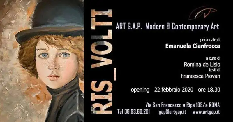 La galleria ART GAP è lieta di accogliere, dal 22 al 28 febbraio 2020, la mostra, RIS_VOLTI , personale di Emanuela Cianfrocca, direzione artistica di Romina de Lisio, testo critico della storica dell’arte Francesca Piovan.