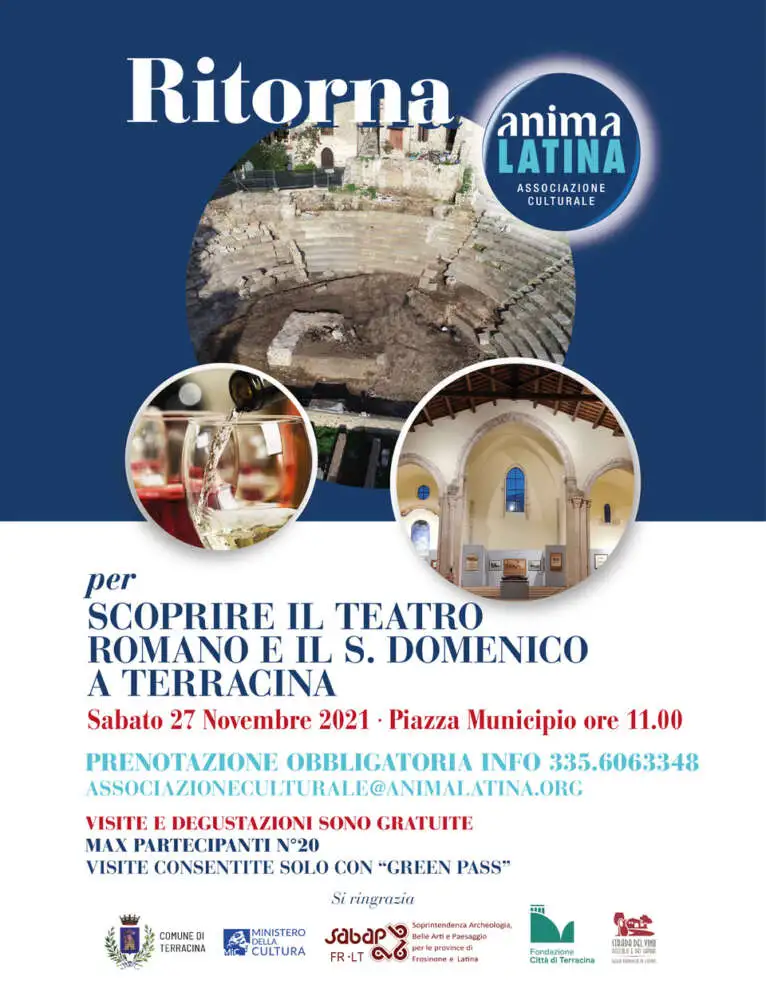 A Terracina per scoprire il teatro romano e non solo… Dopo la pandemia torniamo a scoprire -insieme- i luoghi più affascinanti del nostro territorio. Sabato 27 Novembre 2021 ore 11.00 appuntamento in piazza Municipio a Terracina. Guidati da archeologi della Soprintendenza vivremo in diretta i momenti dello scavo archeologico del teatro romano e ascolteremo le [...]...