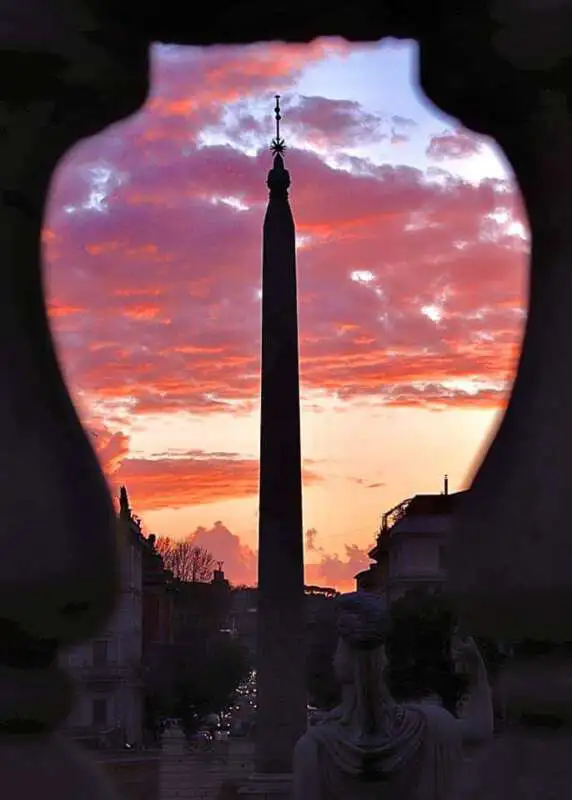 La visita termina con l’affaccio su Piazza del Popolo dal Belvedere del Pincio, dove si trova il nostro ultimo Obelisco detto Flaminio, portato per volere di Ottaviano Augusto a Roma, insieme all’obelisco di Montecitorio, e collocato sulla spina del Circo Massimo.