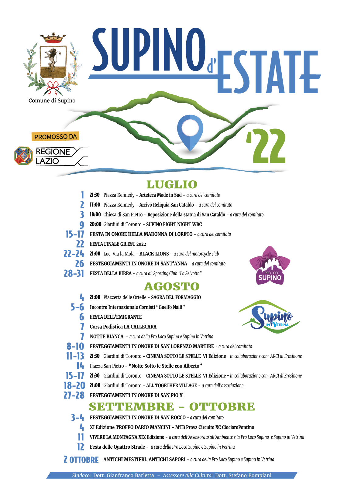 Ad essa si abbina una sagra delle fettuccine che vengono rigorosamente preparate a mano dalle donne del posto. La manifestazione si articola in due giornate nel corso delle quali vengono proposte attività di intrattenimento musicale.