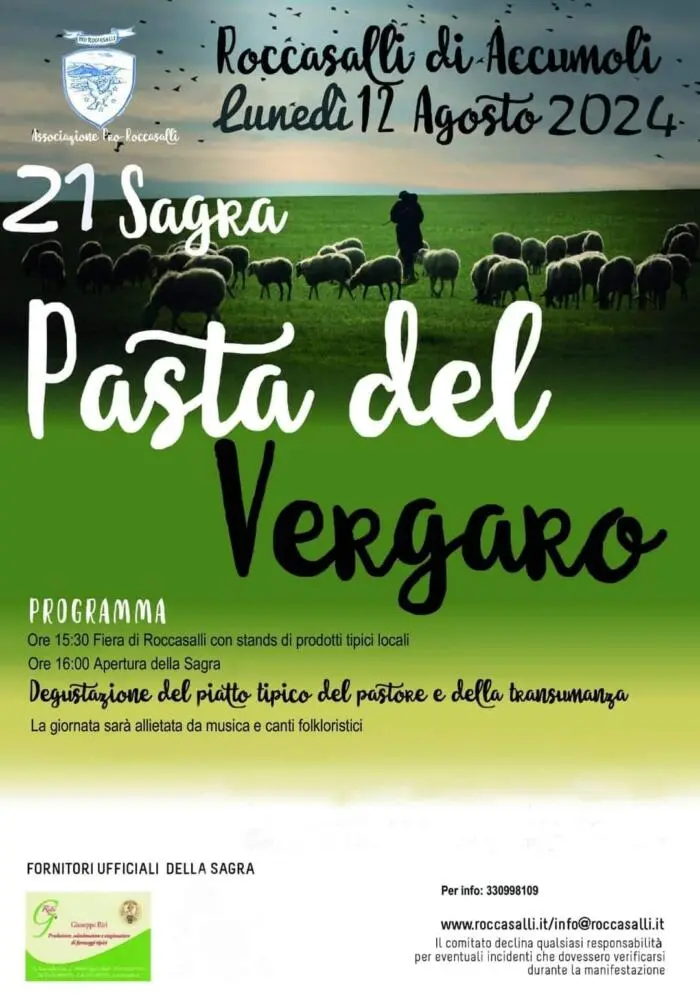 Sagra della pasta del vergaro che si terrà il 12/8 a Roccasalli frazione di Accumoli.