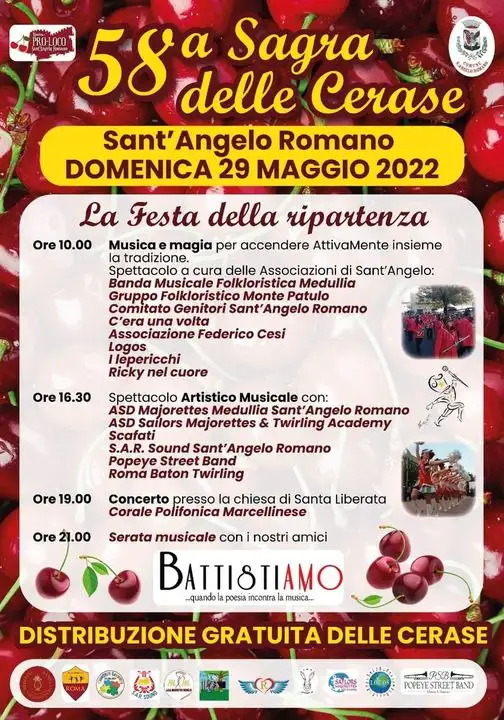 - 10.00 – Musica e magia, spettacolo a cura delle associazioni locali: Banda Musicale Folkloristica Medullia, Gruppo Folkloristico Monte Patulo, Comitato Genitori Sant’Angelo Romano, C’era una volta, Associazione Federico Cesi, Logos, I Lepericchi, Ricky nel cuore.