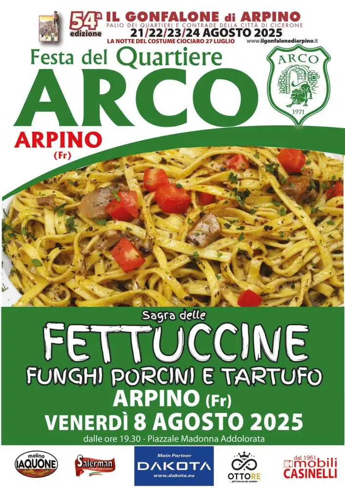 SAGRA DELLE FETTUCCINE FUNGHI PORCINI E TARTUFO – VENERDI’ 8 AGOSTO 2025 – ARPINO (Fr)