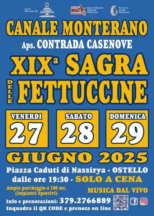 La APS Contrada Casenove vi aspetta per la 19esima edizione della Sagra delle Fettuccine.