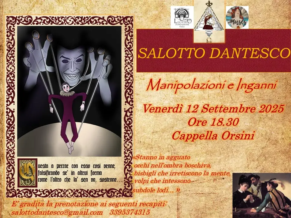 VENERDÌ 12 SETTEMBRE ORE 18.30 vi aspettiamo numerosi alla Cappella Orsini (Via di Grotta Pinta, 21): il tema di questo mese, svelato dai rabbiosi falsari Gianni Schicchi e Mirra, sarà “Manipolazioni e Inganni”.