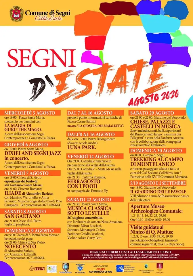 Tutte le iniziative sono promosse dal Comune di Segni in collaborazione con Associazioni, artisti, e volontari.