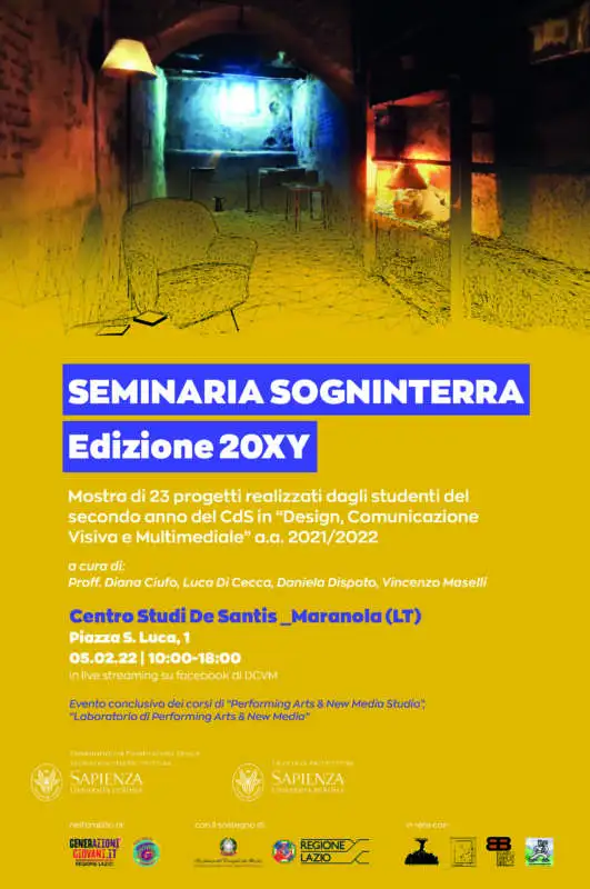 Sabato 5 febbraio, dalle 10 alle 18, nel Centro Studi De Santis a Maranola di Formia. si svolgerà la mostra di 23 progetti di installazioni multimediali sviluppati dagli studenti del secondo anno del Corso di Laurea Magistrale in “Design Comunicazione Visiva e Multimediale” dell’Università Sapienza di Roma.