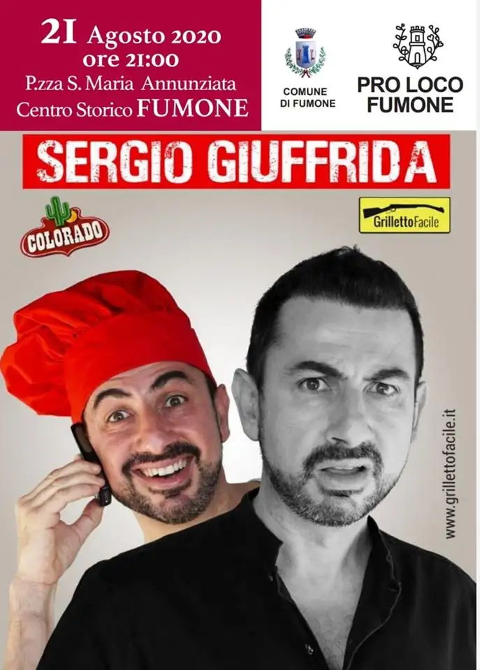 Vi aspettiamo venerdì 21 Agosto 2020 alle ore 21:00 presso piazza Santa Maria Annunziata con lo spettacolo comico di Sergio Giuffrida, comico romano, diplomato all’accademia teatrale di Roma.