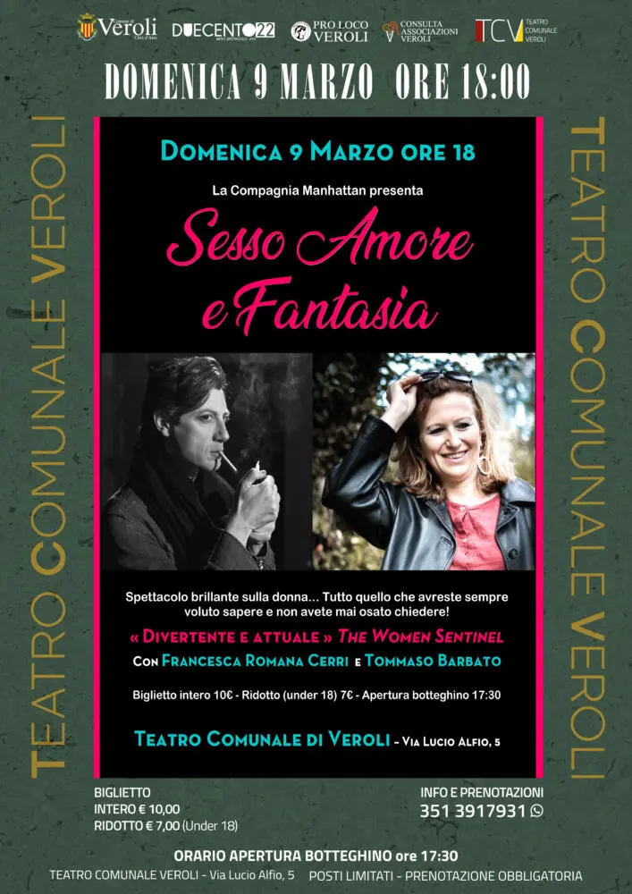 In occasione del periodo della Festa della Donna, domenica 9 marzo al Teatro Comunale Veroli, la Compagnia Manhattan porta in scena uno spettacolo coinvolgente dedicato all’universo femminile alternando toni comici a toni più seri, offrendo molteplici spunti di riflessione.