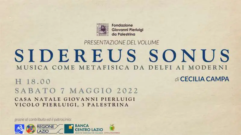 Sabato 7 maggio 2022, alle ore 18:00 presso la Casa natale di Giovanni Pierluigi da Palestrina (vicolo Pierluigi 3 – Palestrina), avrà luogo la presentazione del volume “Sidereus sonus”.