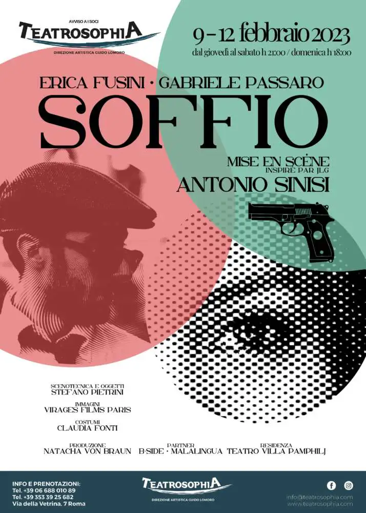 Dal 9 al 12 febbraio Teatrosophia ospita SOFFIO composto da Antonio Sinisi e ispirato al grande film Fino all’ultimo Respiro di Jean-Luc Godard. Una messa in scena dove classico e avanguardia si intrecciano. Ne risulta un corpo-a-corpo, uomo-donna, dove voce/corpo/scena/tempo sono gli assi di riferimento. In scena un’attrice e un attore giovani e bravissimi, Erica Fusini e Gabriele Passaro.