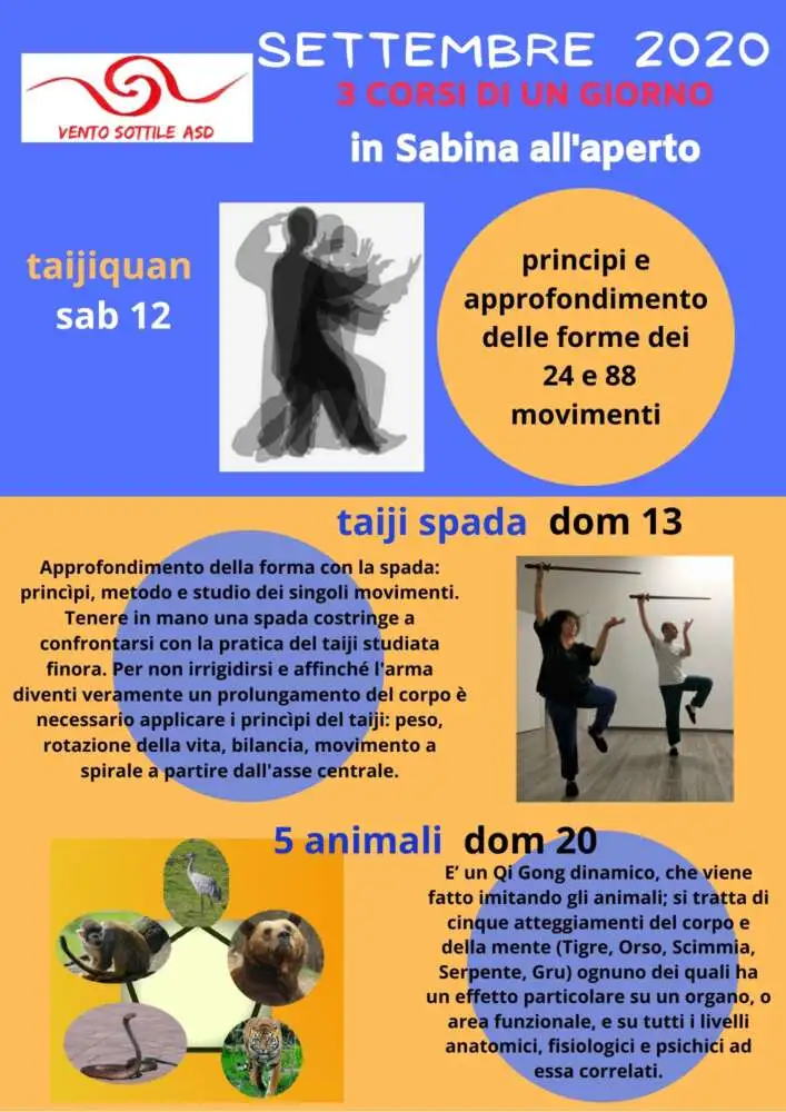 Arte della Spada Taiji : cultura, flessibilità, movimento simultaneo, dall’interno all’esterno, armonia, equilibrio. Approfondimento dei principi, metodo e studio dei singoli movimenti.