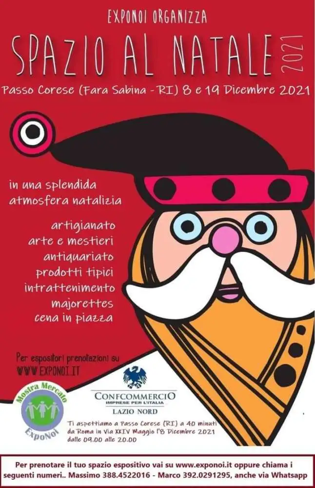 Una magica atmosfera Natalizia vi accogliera’ . .A 40 minuti da Roma… Per Il mercatino di Natale 8 Dicembre 2021 dalle ore 9 alle 20… in via XXIV maggio a Passo Corese (Fara in Sabina) tra Majorettes, cena in piazza..in un clima di allegria e di festa.. per grandi e piccini… Sei un Artigiano? Sei [...]...
