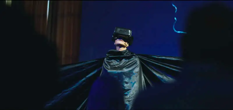 Potenziando lo spettacolo con realtà aumentate, proiettando su schermi che coprono intere pareti ma anche su tende e superfici che modificano lo spazio originale facendolo divenire altro tramite una trasformazione metamorfica. Si presenta il metaverso, con l’attrice Maria Letizia Gorga una sorta di Cicerone che accompagnerà il pubblico ad esplorare la creazione di un “mondo altro”, dove rifugiarsi: il mondo della Poesia.