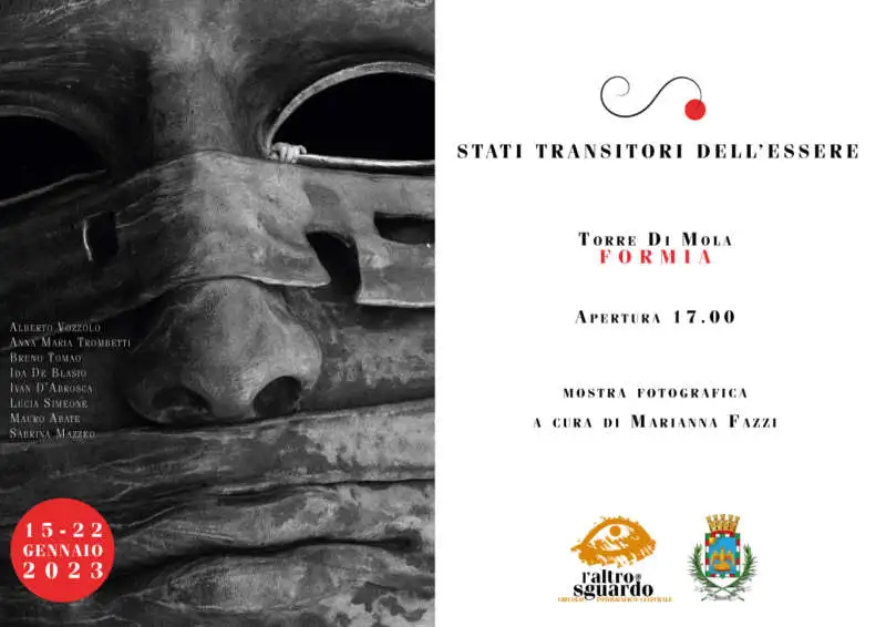 Il circolo fotografico-culturale “l’altro sguardo” di Formia espone dal giorno 15 al 22 gennaio 2023 una serie di progetti fotografici di autori soci del circolo, raccolti nella mostra Stati Transitori dell’Essere con il patrocinio del Comune.