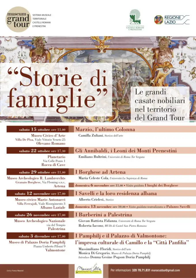 Questo ciclo di conferenze toccherà la famiglia Colonna, quella degli Annibaldi, dei Borghese, dei Savelli, dei Barberini e dei Pamphilj. Con storici dell’arte, professori delle Università La