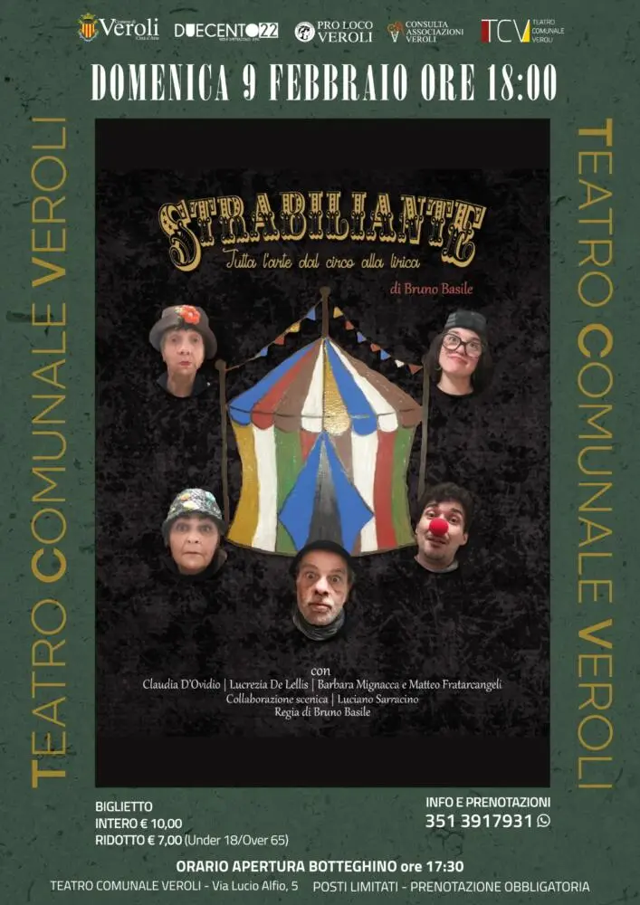 Siete pronti ad assistere ad uno spettacolo “Strabiliante”? Perché questo è proprio quello che porterà in scena Bruno Basile con la sua compagnia domenica 9 febbraio al Teatro Comunale Veroli.