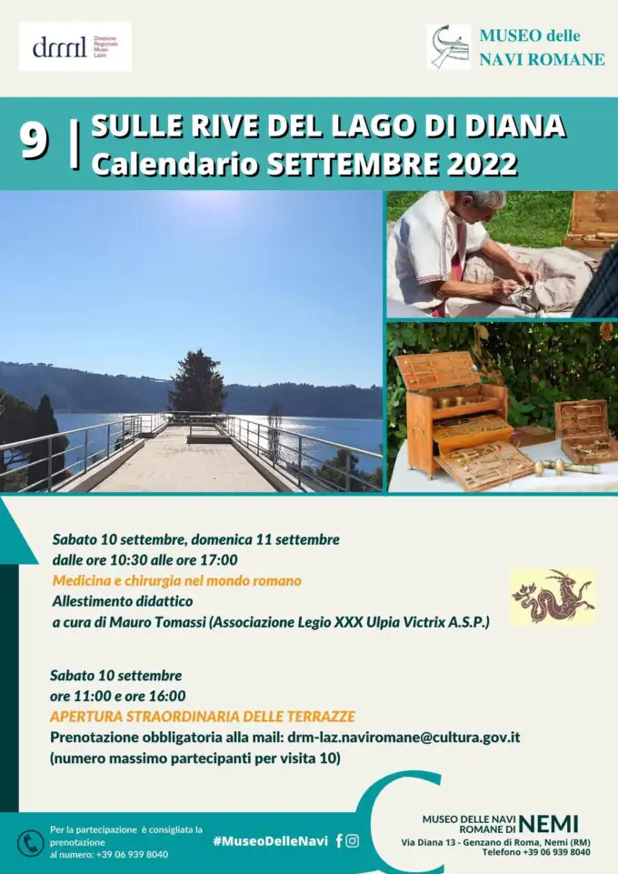 L’incontro si svolgerà sabato 10 settembre dalle 10:30 alle 17:00 e domenica 11 settembre 2022 dalle 10:30 alle 17:00 all’interno del museo che ospita quanto rimasto delle navi di Caligola e del vicino tempio della Dea della caccia; sarà l’occasione per i visitatori di fare un tuffo nel passato e conoscere più da vicino un aspetto poco conosciuto della vita dei nostri antenati: la chirurgia e le tecniche usate nel mondo antico per curare le patologie che affliggevano gli antichi romani.